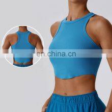 Ribbed Sleeveless Crop Gym Tank Quick Dry Tops Factory Sales U Hem Racerback Sports Bras 96rayon 4spandex