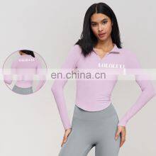 Long Sleeve Quick Dry U Hem Yoga Tops Wear Women Custom Quarter Zip Gym Sports T Shirts Clothing