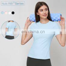 Ribbed O Neck Custom Quick Dry Causal Tshirts Compressed Slim Sports Tops For Women