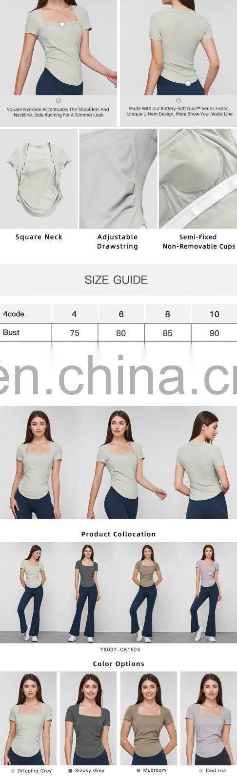 Product Name | Square Collar Women Sport T-Shirts Wholesales Quick Dry U Hem Fitness Tops Summer Outdoor Yoga Wear | ||||||