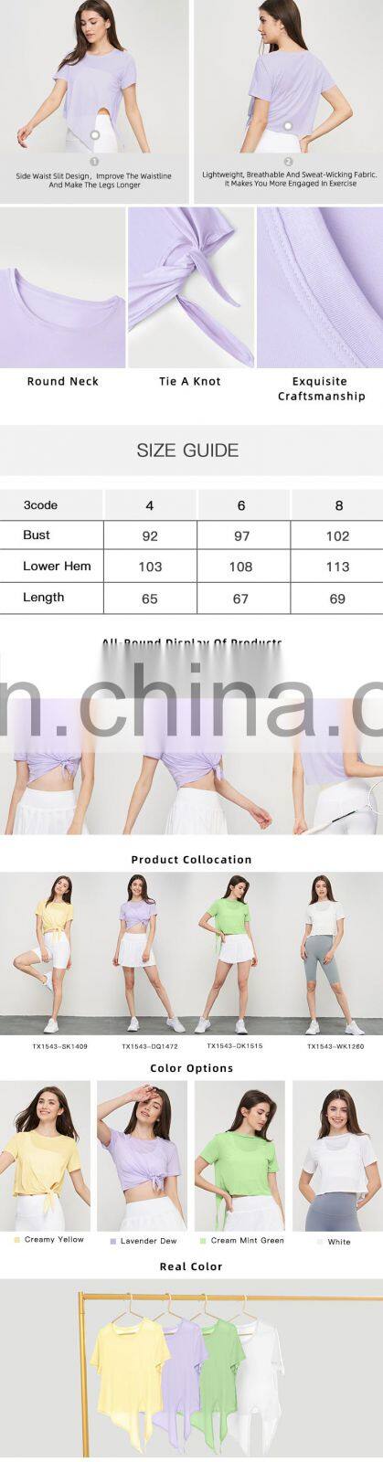 Quick Dry Sports Breathable Lightweight Tshirts Factory Sales Yoga Side Slit Crop Fit Tops