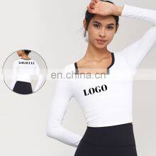 Contrast Color Yoga Crop Tops For Women Breathable Long Sleeve V Neck Custom Gym Fitness Tight T Shirts
