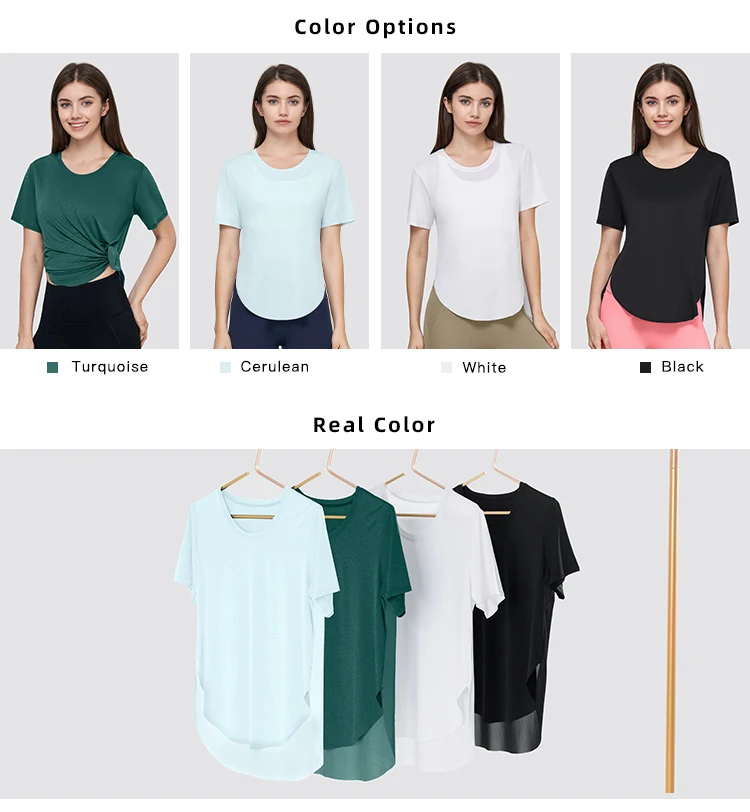 Wholesale Women Breathable Gym Oversized Yoga Tops U Hem Fitness Sports T-Shirts