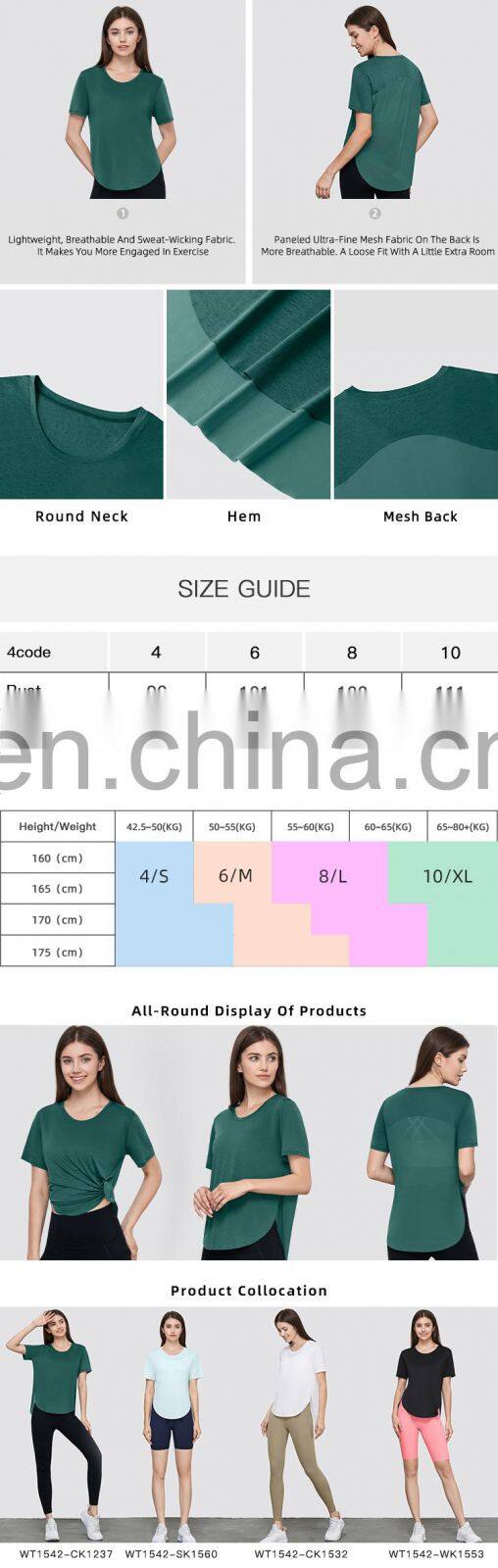 Product Name | Sports Mesh Back Long Women's T-Shirts Custom U Shaped Hem Yoga Causal Breathable Tops | ||||||
