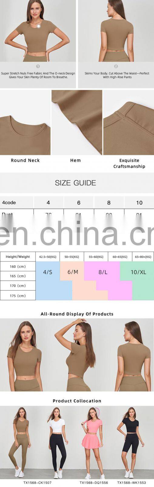Product Name | Round Neck Women Crop Sports Tight T Shirts Factory Supply Yoga Short Sleeve Tops | ||||||