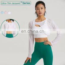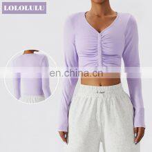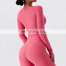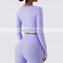 Skinny Long Sleeve Front Folding Yoga Crop Tops Custom Women Quick Dry Sports Shirts