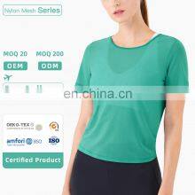 Spring Mesh Blouse Sports T Shirt Women Workout Crop Yoga Top With Reversible