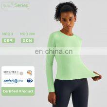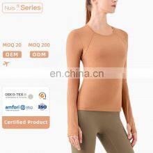 Custom Logo Slim Fit Women Long Sleeve Tops Out Wear Nude Sports T Shirt With Thumb Holes