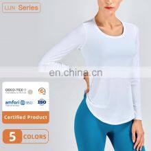 Fashion Wear Ladies O-Neck Blouses Long Sleeve Crop Top Women t Shirt Custom Logo Yoga Clothing