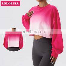 Gradient Color Long Sleeve Crop Tops Hot Sales Round Neck Short Women Sweatshirt
