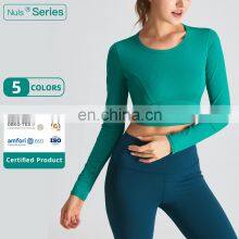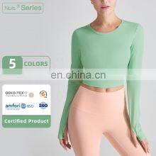 OEM Gym Apparel Sexy Long Sleeve Crop Top Workout Tops For Women Gym T Shirt