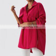 Women Long Line Cotton Loose Shirts Tops Custom Full Button Casual Pockets Blouse