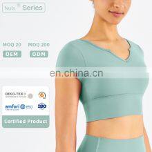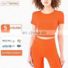 Womens Short Sleeve Shirts Workout Pure Color Custom Printing Yoga Summer T-Shirt