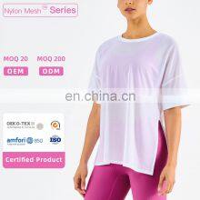 Side Waist Slit Design Mesh Sports Gym T Shirt Fashion Girl Yoga Short Sleeve Eco Fabric