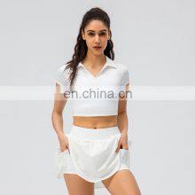 Ladies Short Sleeve Cropped Collar Top Activewear Slim Fit Outfits Women Pleated Golf Tennis Short