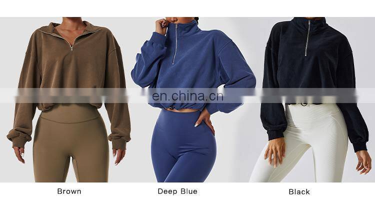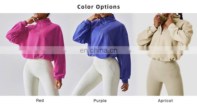 Product Name | Hot Sale High Collar Quarter Zipper Warm Pullovers Long Sleeve Women Drawstring Hem Sweatshirts | ||||||