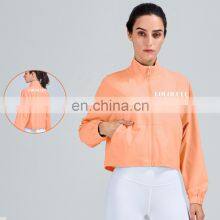 Women Yoga Gym Fitness Sun Protection Tops Wholesales Zip Up Sleeve Sports Jackets With Pockets