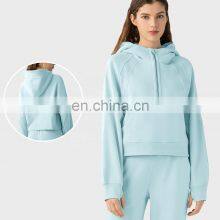 Women Warm Crop Tops Hoodies Custom Logo Double Sliders Zip Up Sleeve Sports Jackets 95polyester 5spandex