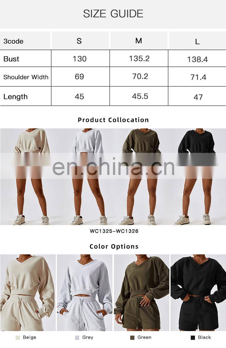Home > Products > Daily wear > V Neck Fleece Oversized Tops Women Pullover Wholesale Cropped Hoodies Sweatshirts 50cotton 22polyester