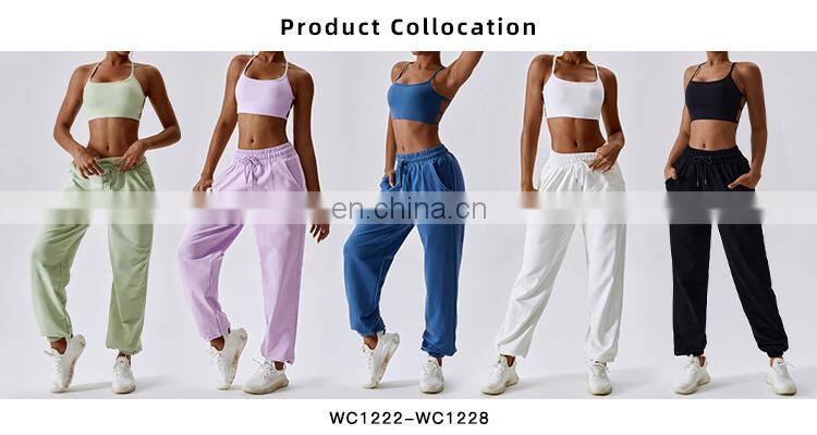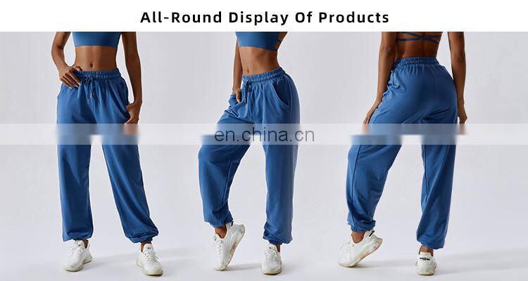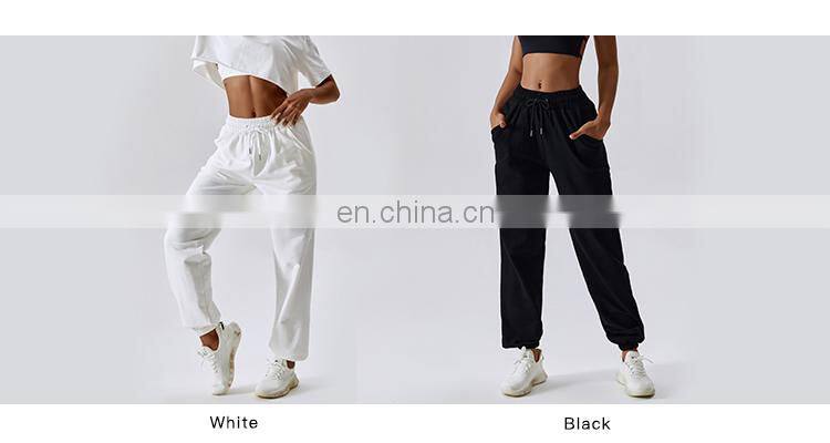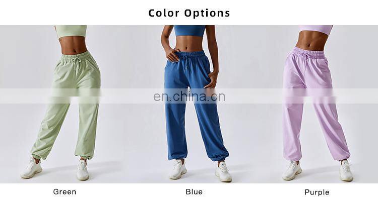 Custom Quick Dry Women Jogging Loose Casual Pants Side Pockets Yoga Fitness Leggings