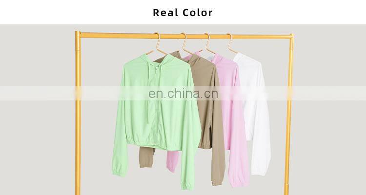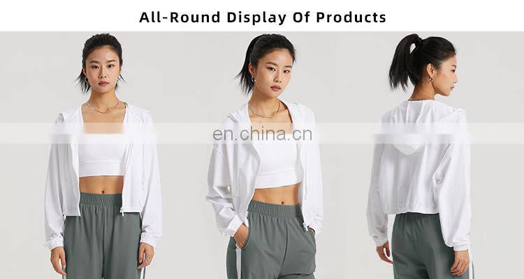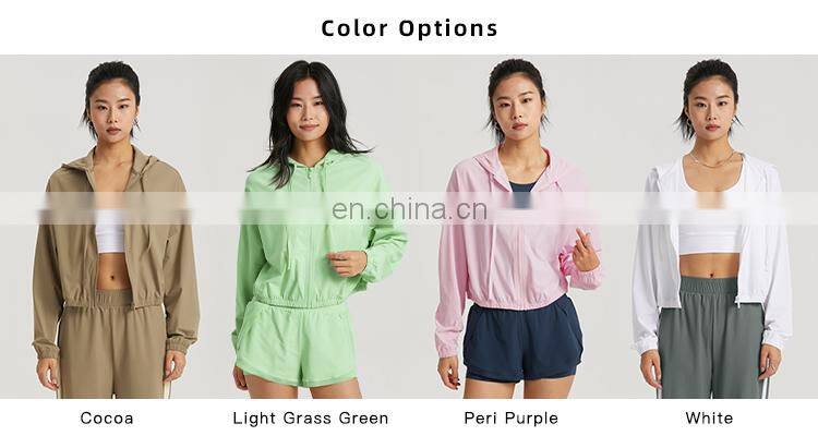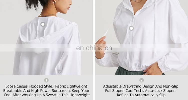 Product Name | UPF 50+ Adjustable Drawstring Sports Hooded Jackets Wholesale Womens Long Sleeve Yoga Tops | ||||||