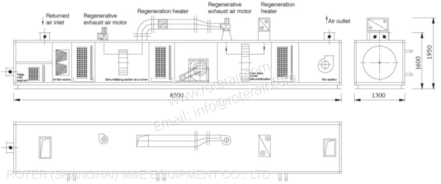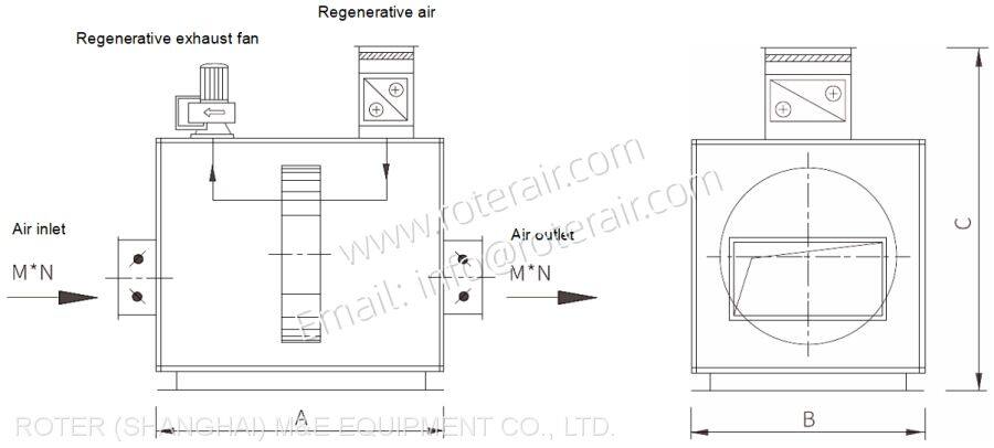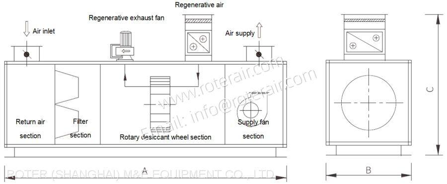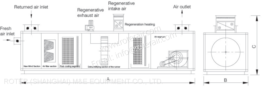 ♣ This series has the rotary dehumidifier functional section only, which needs to work together with air handling units to achieve adjustment of the temperature and humidity