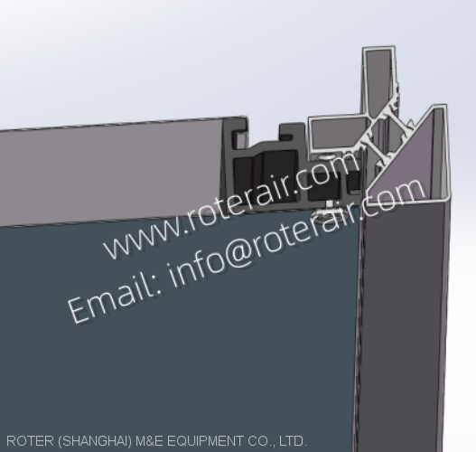 (5) Access door: made of plastic steel frame and polyurethane foam, processed with double sealing, anti-cold bridge. There is high-density sealing strip between the units’ wall panel and the frame. And unit inside is coated with a special sealant, after testing, the air leakage rate is not more than 0.5% under static pressure 1000Pa