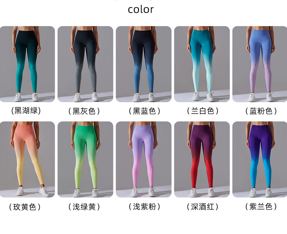 Home > Products > leggings > YYBD-0033,Cross-border Amazon Seamless Knit Candy Gradient Tight Height Waist Hip Lift Women Yoga Pants Sports Fitness Pants
