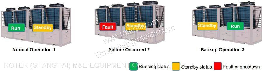 ♣ High-efficiency and Energy-saving: Air cooled modular chiller (heat pump) has been tested by the national testing agency, and the full-load COP is as high as 3.27, reaching China national secondary energy efficiency standard and obtaining the national energy-saving product certification.