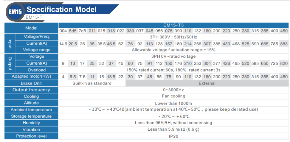 EM15-G3 General Used Vector Control Frequency Inverter(3 Phase )