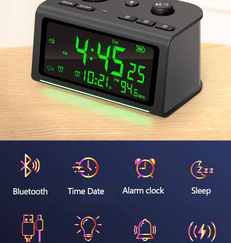 Phantom Bluetooth Speaker Alarm Clock Radio With Recording Function Charging Audio