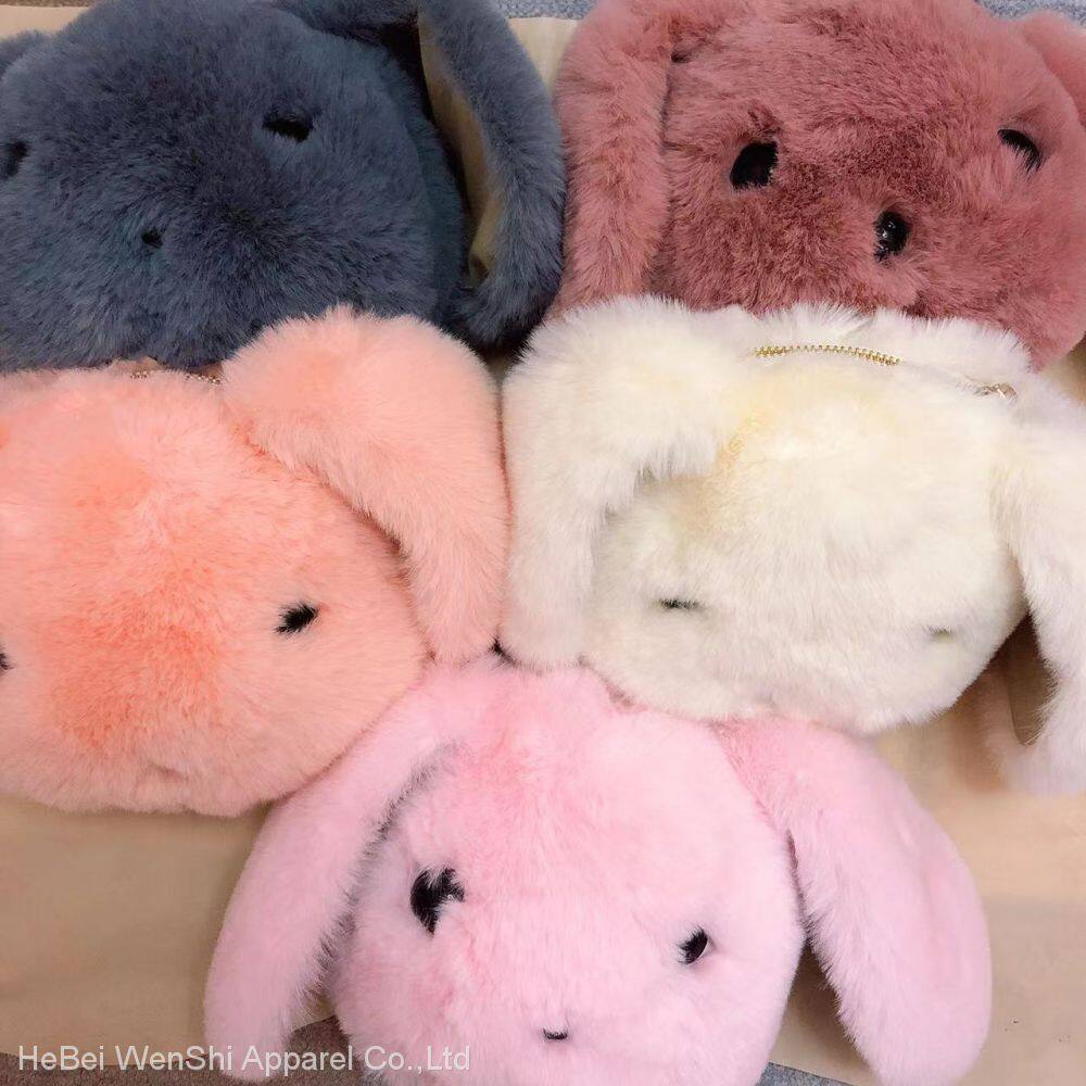 015Winter Plush Bag Soft Rabbit Bag Cute Fashion Women's Shoulder Bag Girl Crossbody Bag Wholesale Faux Fur Bag