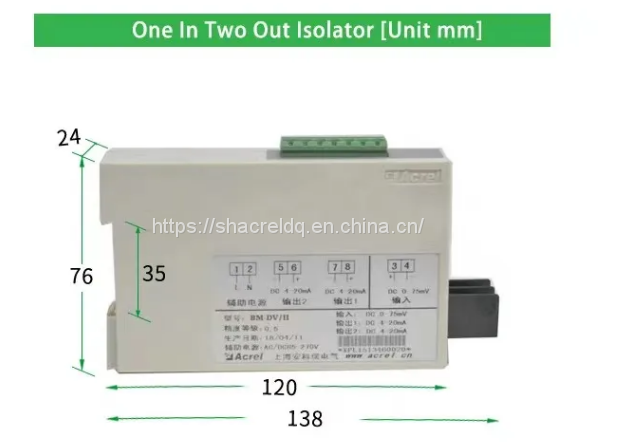 Home > Products > BM Series Analog Signal Isolator > Acrel BM-DV/II One in and Two Out Isolator Output 2 Channels 4-20mA Power DC 24V Highly Accurate Measurements