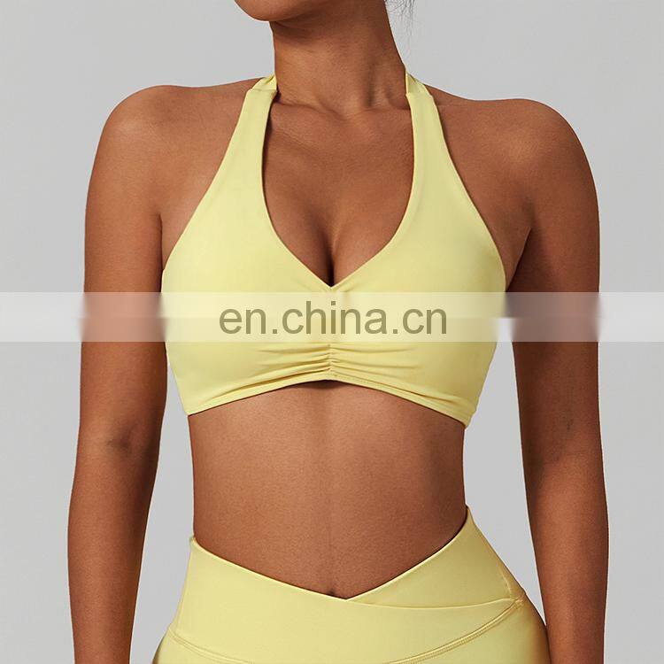 Top Fitness Gym Yoga Workout Sports Bra Top Yellow Yoga Sport Bra Women Gym Halter Neck Sports Bra