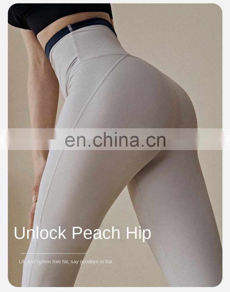 New feeling naked yoga pants summer female senior high waist and buttock sense peach hip fitness pants tight running training