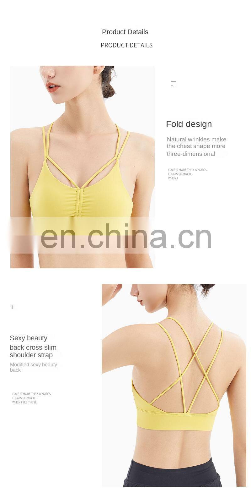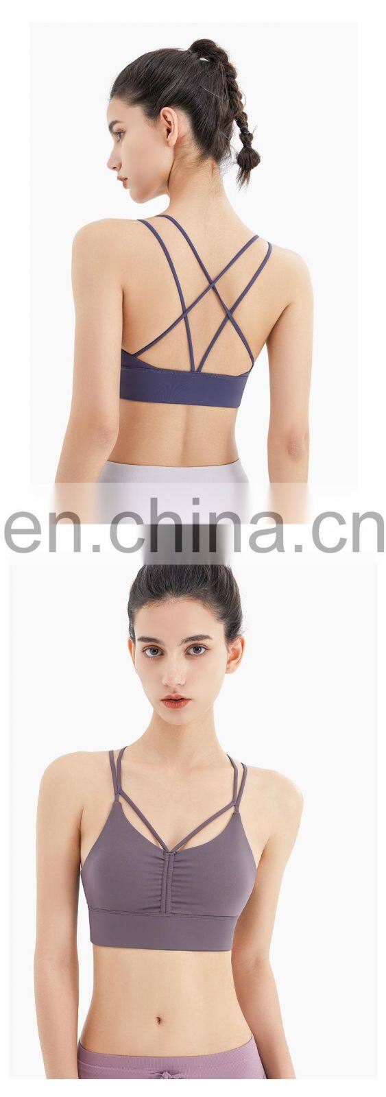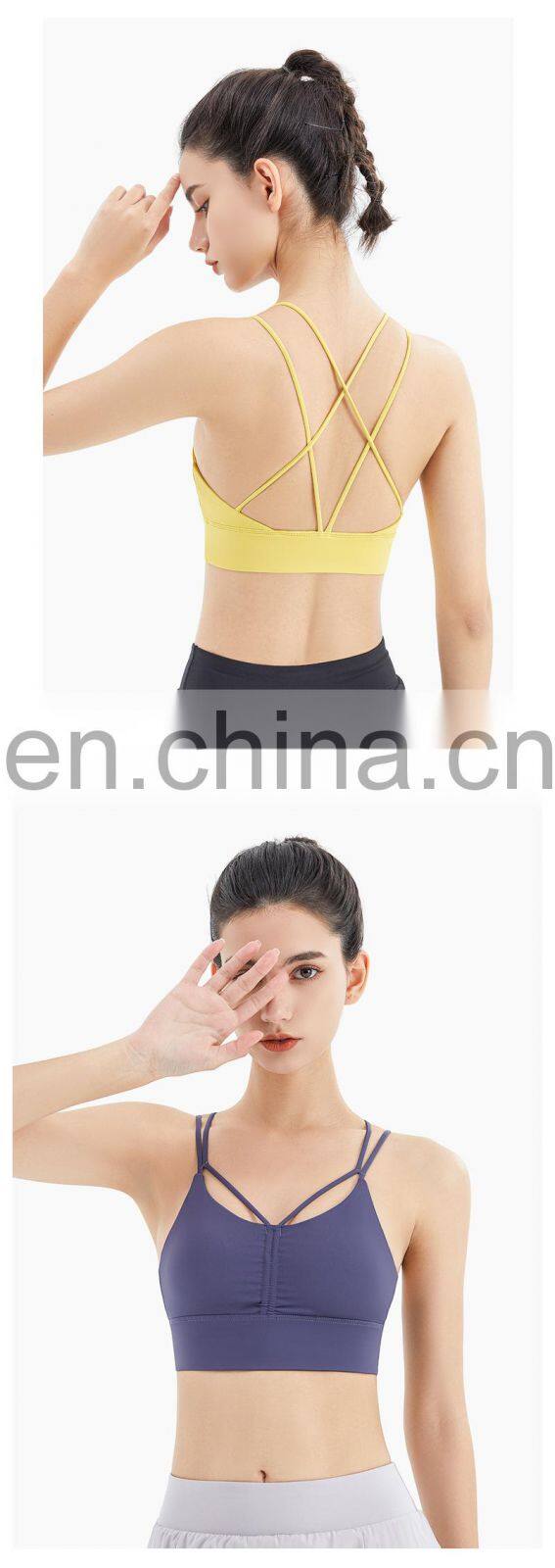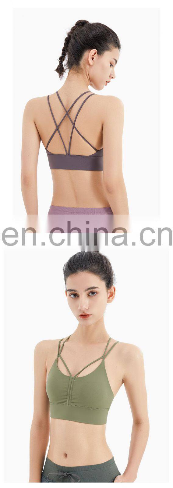 Summer New Thin Straps Sexy Padded Cross Back Open Back Sports Gym Fitness Wear Workout Soft Nude Feeling Women Yoga Bra Top