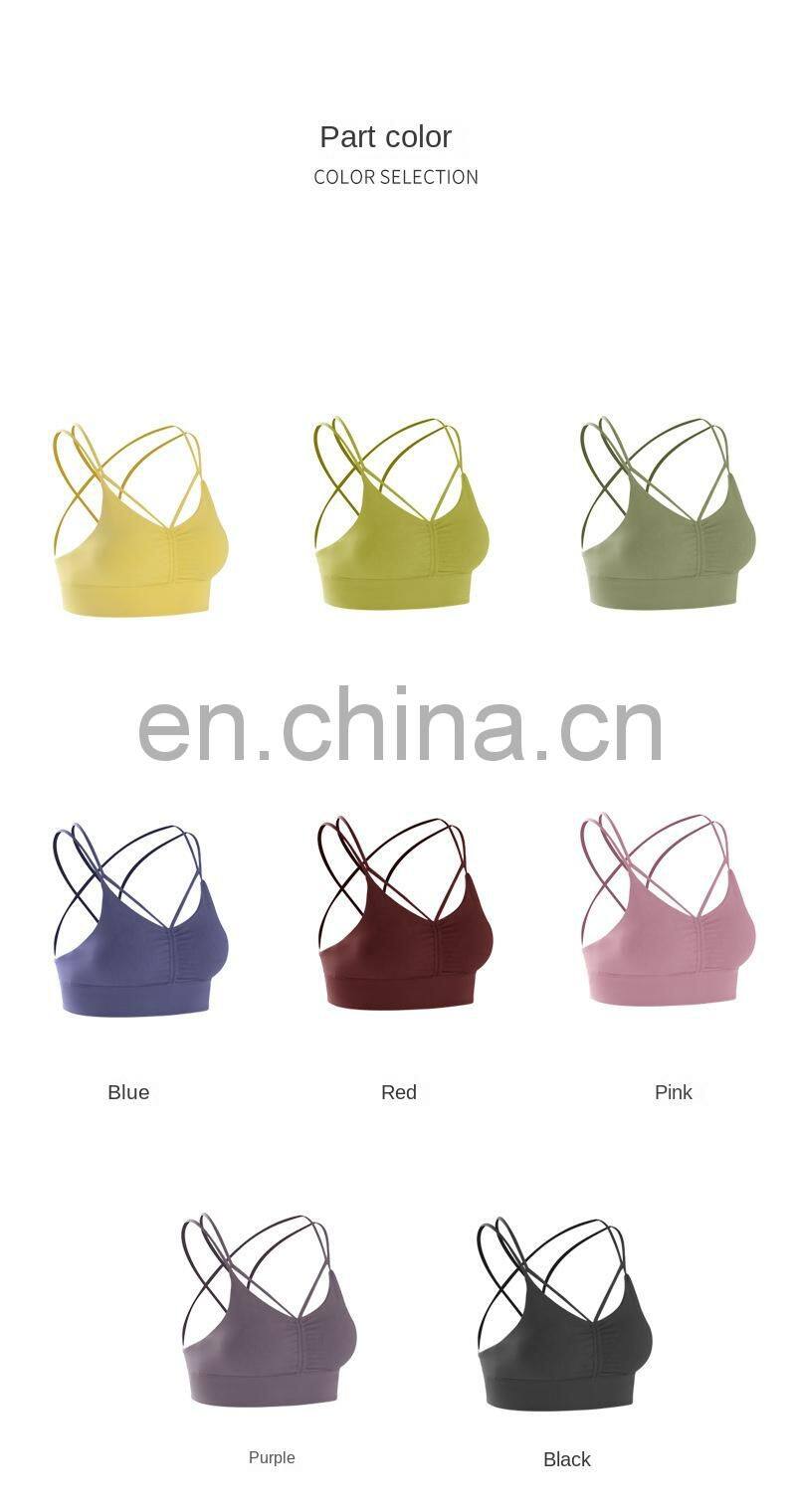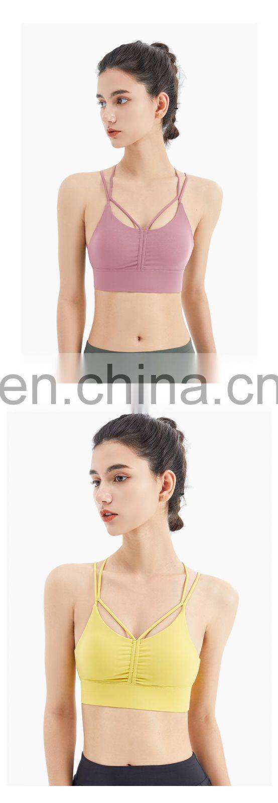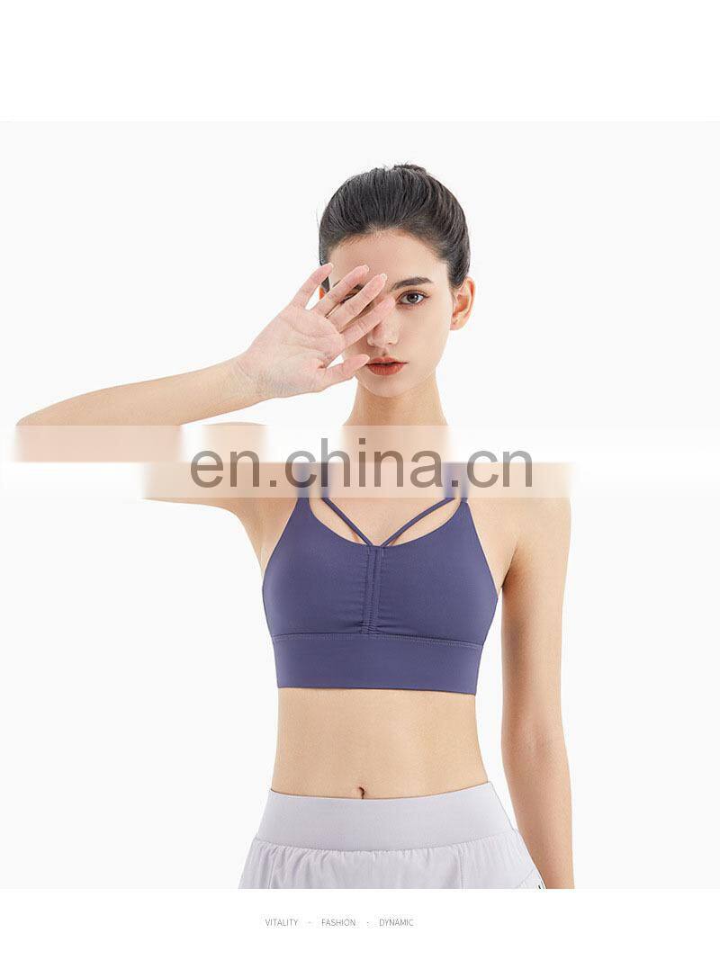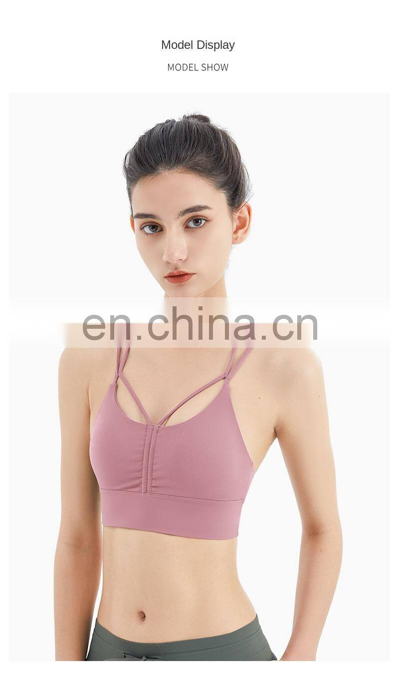 Summer New Thin Straps Sexy Padded Cross Back Open Back Sports Gym Fitness Wear Workout Soft Nude Feeling Women Yoga Bra Top