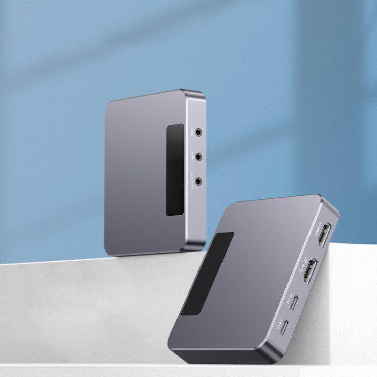 The HDMI audio video capture card is a portable audio and video live broadcast tool. The capture card captures audio and video signals (such as SLR cameras, camcorders, computers, etc.) through the HDMI input port, and then connects to devices such as mobile phones and computers through the USB-C output port to achieve video live broadcast. Function, widely used in web live broadcast, video conferencing, screen monitoring, distance education and training, transportation charging and other fields.