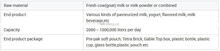 various fat contents. This Milk processing line raw milk can be fresh milk or powder milk, the procedure method can be