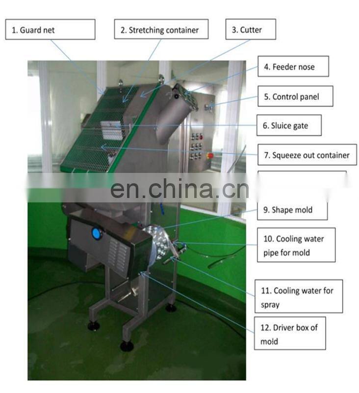 It includes elevator with feed funnel, automatic control, cutting curdcookingstretchingmoulding, speed adjustable system, hot water generating and recirculation system, include valves, filter, pump and piping for water rout. The cutter, stretcher, squeezer and shape mold are controlled separately. The speed of each one can be adjusted by frequency transducer.