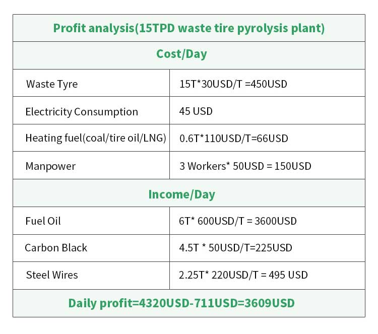 A: Different capacity of tyre pyrolysis plants have different cost. And also different desgins of tyre pyrolysis plants have different cost. But if you want to save some cost, our engineer also can design the most efficient machine solutions for you. To caculate detailed cost for your referrence , please contact us directly.