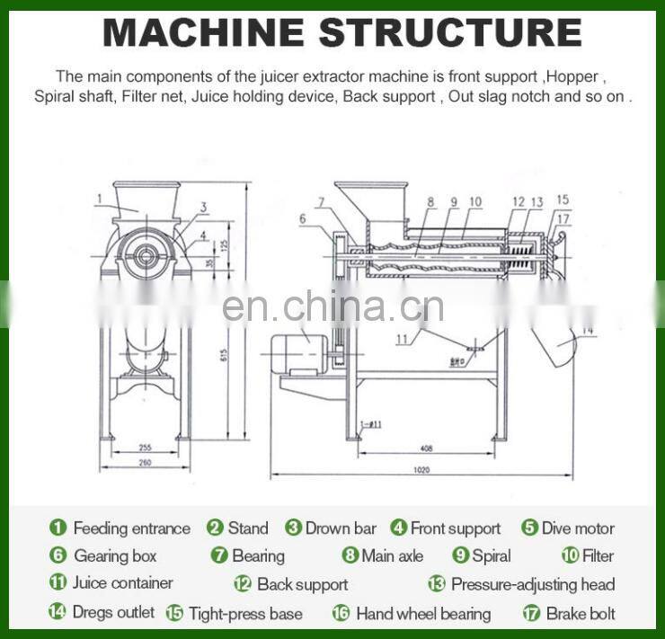 2. The aircraft are assembled from crusher and screw juicer two parts, automatic completion of crushing, juice, slagging process.