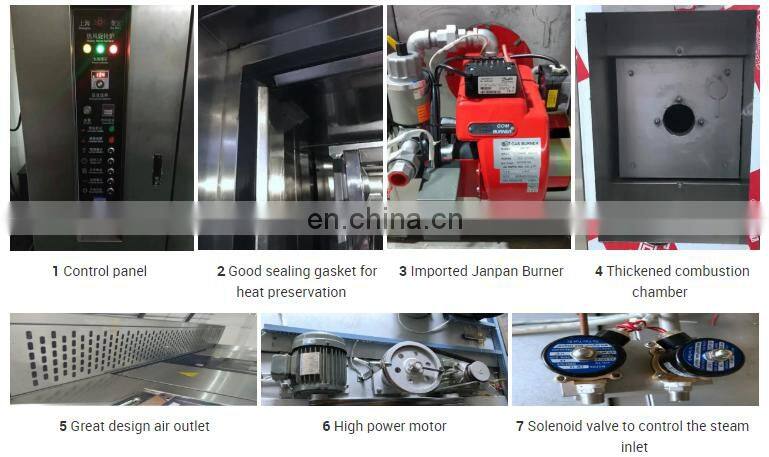 2.With whole adopt assembly structure, the appearance is made of stainless steel , inside of the oven for baking is made of importing alclad sheet. The frame can moving freedom,and at the top of the inside oven with a circumrotate pothook, and adopt blast force heated air circulation; this can enhance the efficiency of the thermal transmission , and reduce the heating time, so it may cause a more frugal energy.