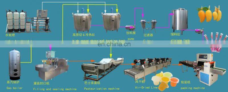 This jelly production line is Perfect to produce all kinds of jelly and pudding, such as milk pudding, fruits flavor