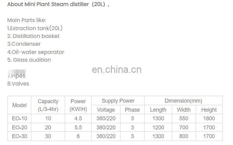 extract, collect plant volatile oils. This machine uses special structure of the water vapor distillation unit can efficiently
