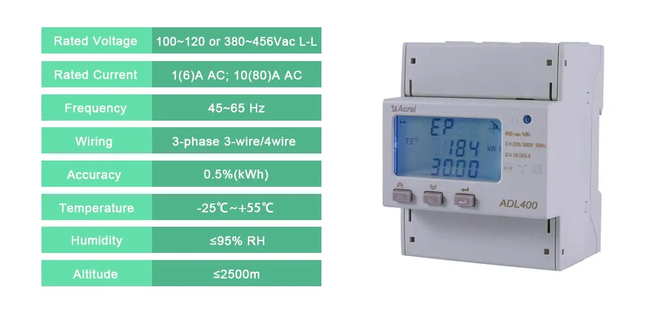 ADL400 din rail energy meter adopts DIN35mm din rail installation with LCD display. It can measure electric parameters and has energy pulse output, RS485 communication,which has the advantages of small size, high precision, good reliability and convenient installation.
