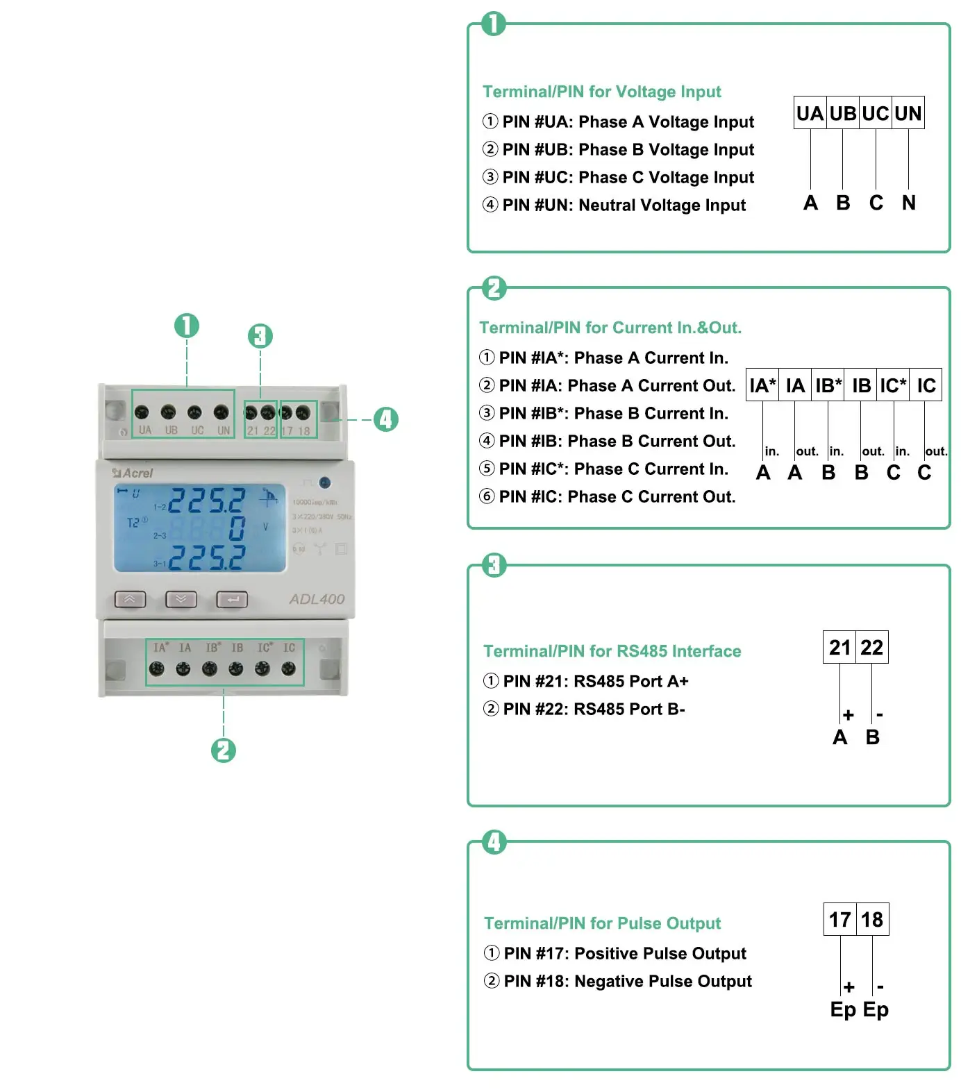 PIN/Terminal Overview of ADL400 (CT Operated Type)