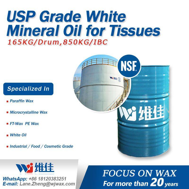 It's important to note that USP Grade White Mineral Oil is only one component in tissue production, and manufacturers may incorporate additional materials or additives to achieve specific characteristics or functionalities in tissues. The use of USP Grade White Mineral Oil ensures that the oil is of high quality, free from impurities, and suitable for contact with the skin.