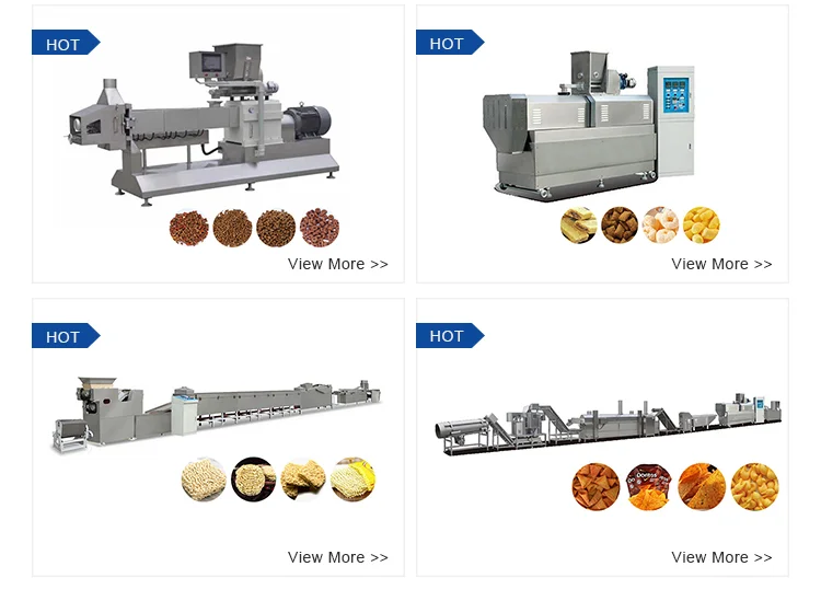 - Main products: pet food machine, snacks food machine, instant noodles machine, dog snack food machine, pellet chips machine, fish food line, corn flakes machine, dog treat machine, packing machine, fried chips machine, drying machine, frying machine
