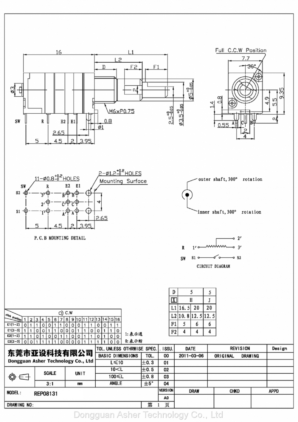 Dual Axis Rotation, Integrated With Logic Encoder, Potentiometer, and Switch, 16 Channels, 4 Bit, Used for Communication Equipment Such as Walkie Talkies and Radios
